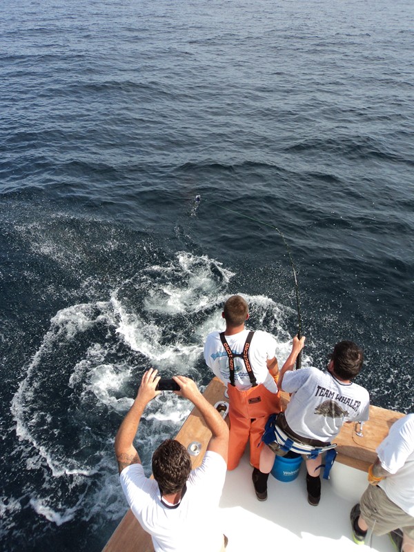 We will be doing a 30 hour over night trip departing tomorrow July 16-17 and will report with pictures how we do. We will post pictures shortly of our battle with the Blue later today. You have to run farther to get to the canyon holding the tuna but overall it is well worth the extra expense and time the tuna fishing is that good. With the speed and comfort of the 55 Hooked Up II it is the perfect boat to make the ride south to where this great tuna fishing is now happening.