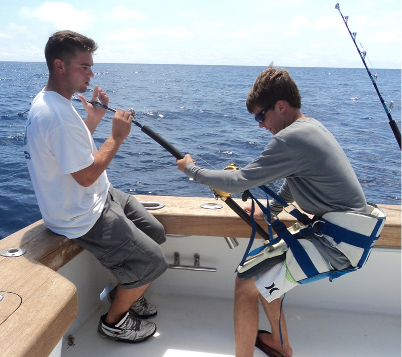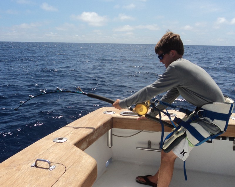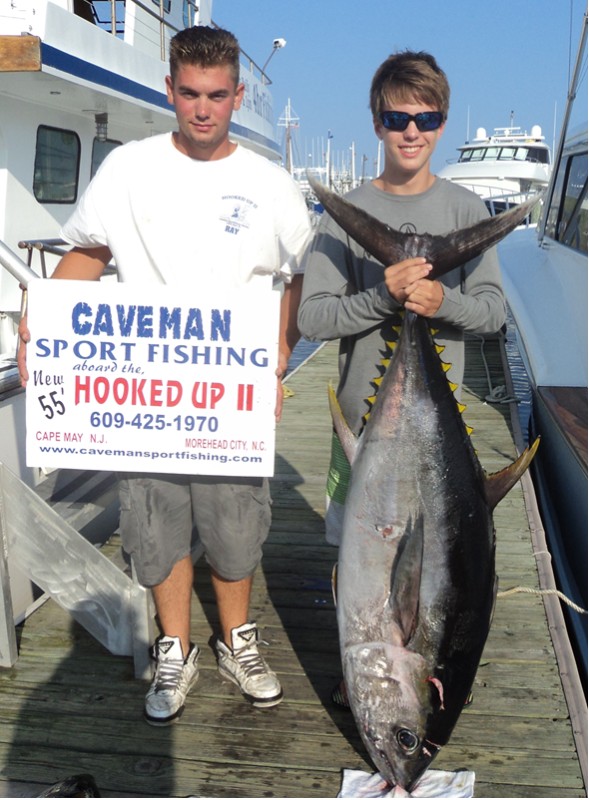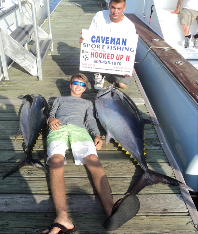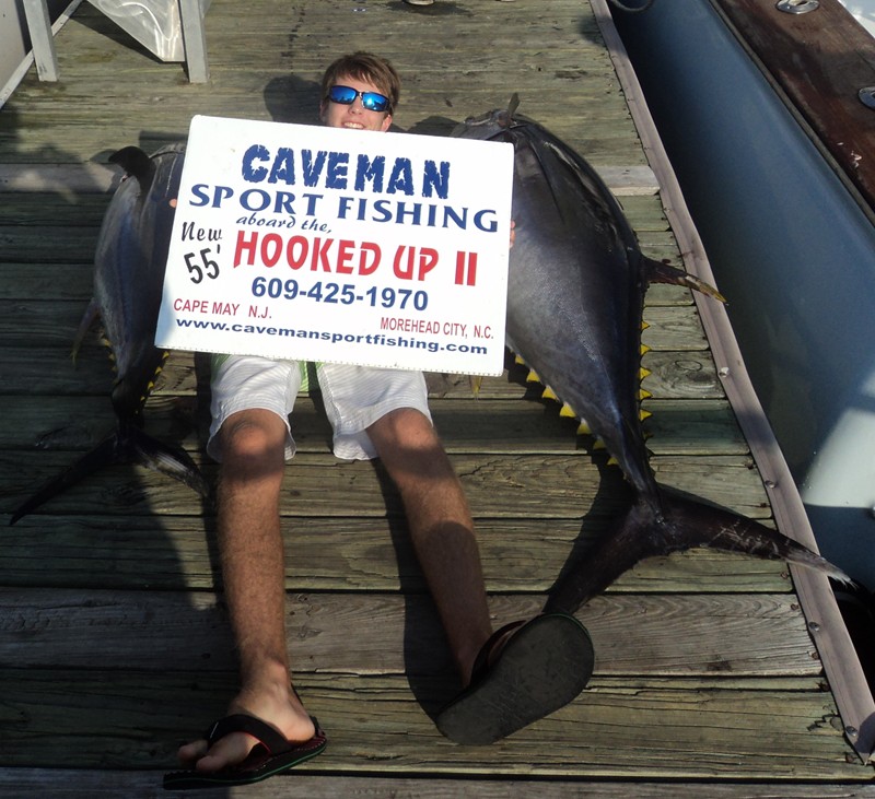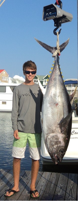 We set out today with a goal in mind…to catch 14 year old Jack Rodberg his first tuna! Well, we succeeded and Jack and his father Derek were excited. The two chartered the whole boat for themselves and came all the way from Islamorada, Florida! Not only did we catch a nice 70 lb. yellowfin, but we also caught a 131 lb big eye tuna!!